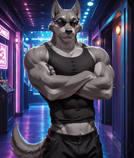 spike,broad shoulders,abs,muscular male,grey fur,wolf,black claws,