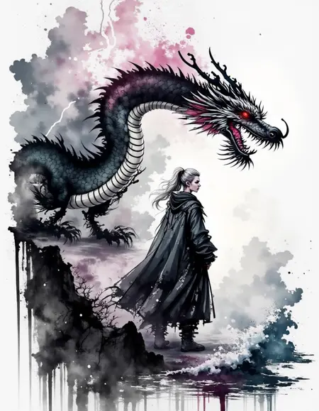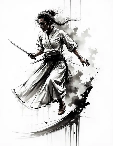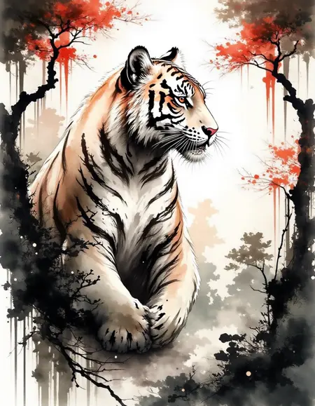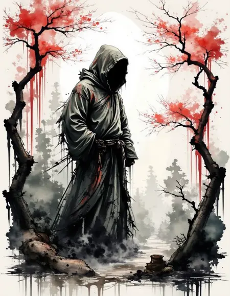 Mystic Sumi 将图像转化为充满动感的构图,人物、生物与场景从流动的墨色与空灵的泼洒中浮现。每幅作品都融合了清晰的墨线与柔和的晕染,并以大胆而富有氛围的墨点作为点缀。这种风格致敬了传统水墨画对简约与留白的重视,同时引入了鲜活而自发的元素,赋予画面现代且超现实的质感。