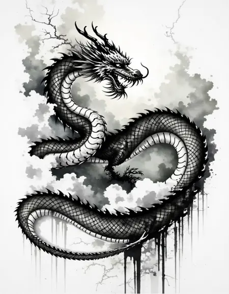 其他有效关键词:Mystic Sumi 训练了若干可添加特效的选项,例如 "bold ink drips cascading down"(浓墨垂滴)或 "dripping ink"(滴落墨迹),以及 "dynamic [black and other color] splashes in the background"(背景中动态的{黑或其他颜色}泼溅)和 "high detail with flowing brushstrokes"(高细节与流畅笔触)。