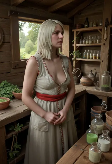 알케미: 그녀는 알케미에 능숙하며, 자신의 능력을 강화하고 동료를 지원하기 위해 종종 약초와 조제물을 실험한다.