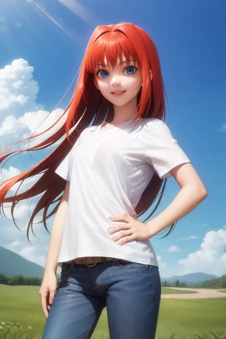 レッドシフト: aozakired, red hair, white t-shirt, jeans, belt