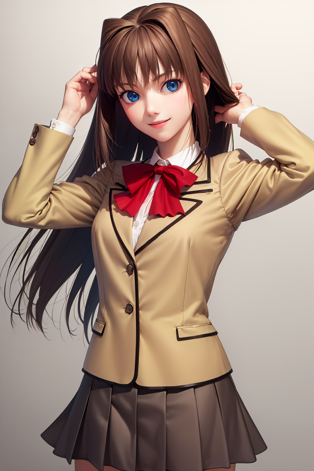 学ラン: aozakischool, brown hair, school uniform, blazer, bow, pleated skirt