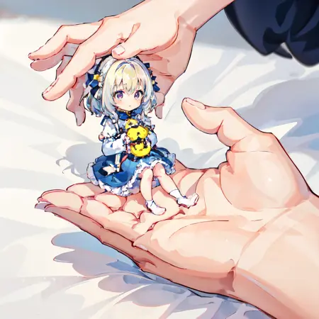 さまざまな姿勢で小さくなった女の子を手で持つ画像を生成するためのLoRAです。このコンセプトを探求するのは面白いと思ったので作成しました。SDは手の描写に常に課題を抱えているため、手は最適とは言えませんが、それ以外の結果には満足しています。良い画像を得るには少し調整や再試行が必要になるかもしれません。また、将来的にはこのモデルを、より一般的な小さくなった女の子用のモデルに拡張する予定です。