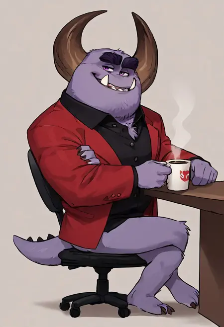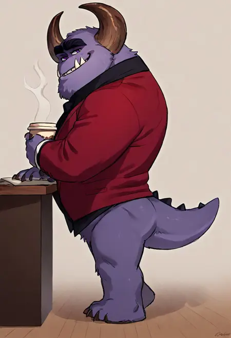 "johnny worthington, monster, slighty chubby, muscular, purple fur, mature male, anthro"