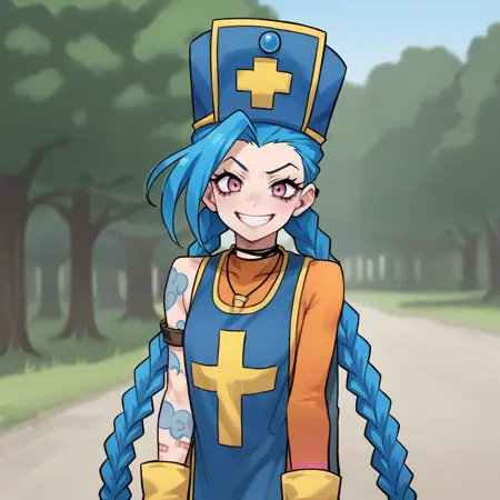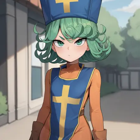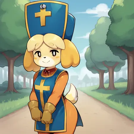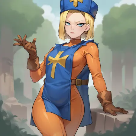 Optional: orange bodysuit, tabard, gloves, mitre, blue headwear