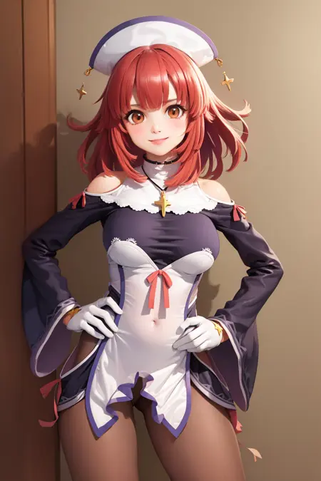 Demon: demon girl, horns, detached sleeves, pantyhose, navel, cleavage