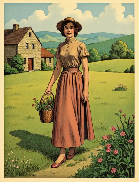 20世紀初頭のヴィンテージイラストスタイル。フランスの田舎雑誌『Rustica』の古い号のカバーイラストから学習された。