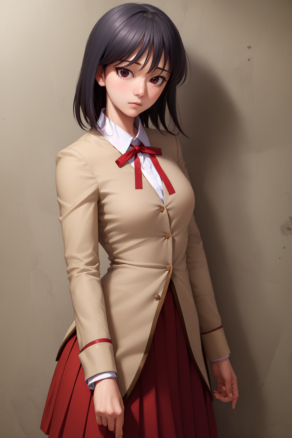 기본 복장: 학교 유니폼, 리본, 주름 스커트