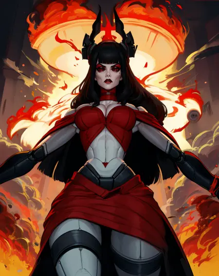 Ambra, red sclera, black eyes, black hair, blunt bangs,