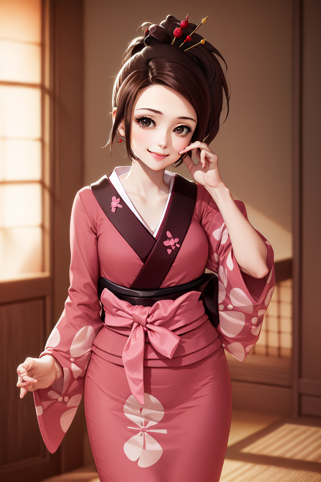 默认服装: 和服,粉色和服