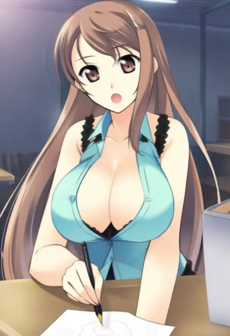 Amane, anime_style, girl, very long hair, brunette, light brown eyes, thin
