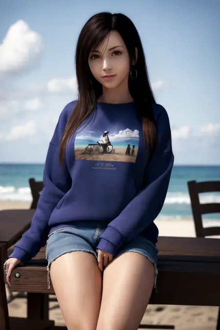 Tifa from the movie Final Fantasy VII: Advent Children, a bit different from the current popular FF7RE version, a weight above 0.5 should give a good result. I used around 0.7 to generate the demo pics. Highly recommend using it with Adetailer and Hires.fix.