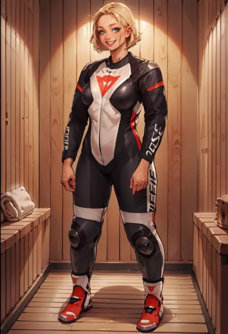 This LoRa produces a leather motorcycle outfit.