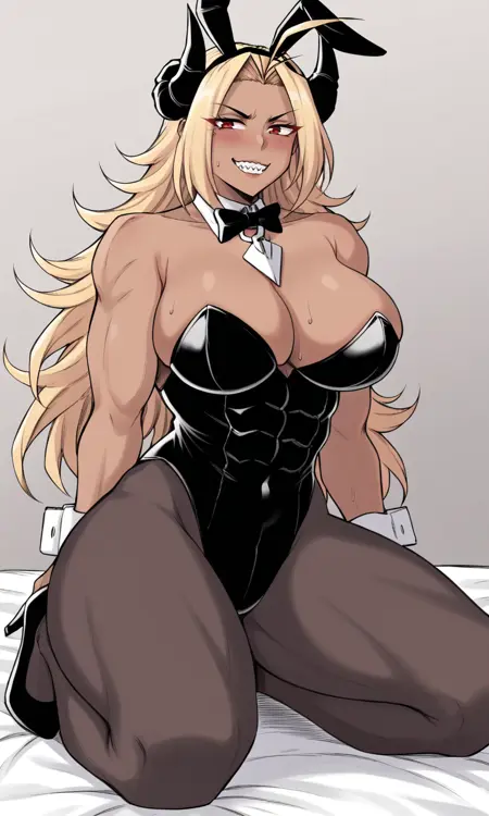 alv1da, red eyes, dark-skinned female, long hair, large breasts, demon horns, cleavage, demon girl