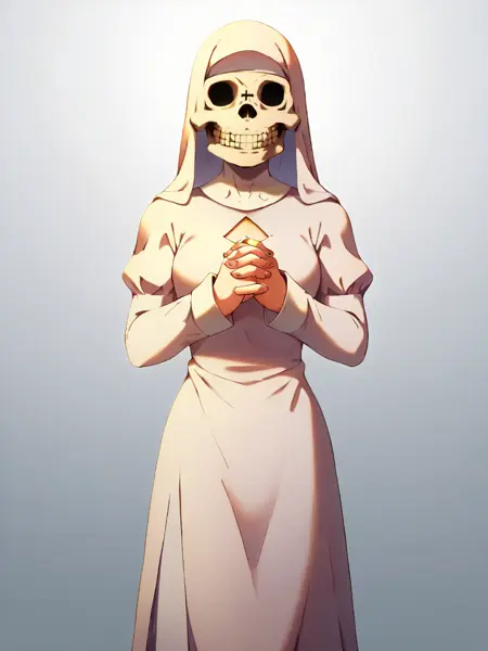 트리거 단어: Dalethwaifu, 보라색 눈, 흉터, 긴 드레스, 흰 드레스, 가슴 노출 자르기, 수도복