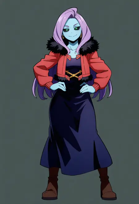 基本プロンプト:1girl, chitosekizuki, colored sclera, green eyes, purple hair, long hair, colored skin, blue skin