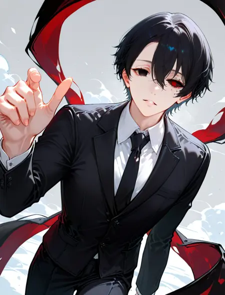 单个 Kakugan:一个 Kakugan,异色瞳,一只眼睛为红色虹膜和黑色巩膜,另一只眼睛为 ____ 色(____ 可为任意颜色)