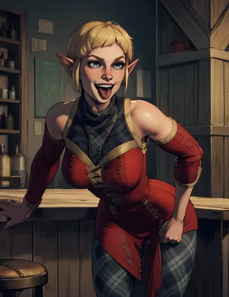 Sera, blue eyes, blonde hair, short hair, pointy ears, --- elf, may enhance