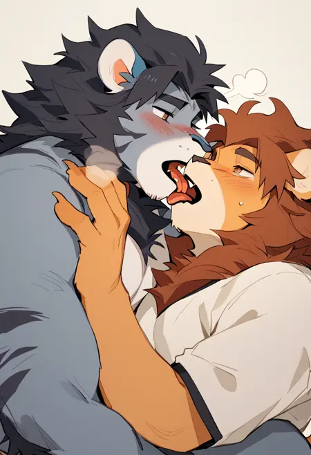 Pony: high quality, hires, by hemuchang, furry, 1boy/2boys, bara, muscular male, muscular, thick eyebrows, ...your tags...