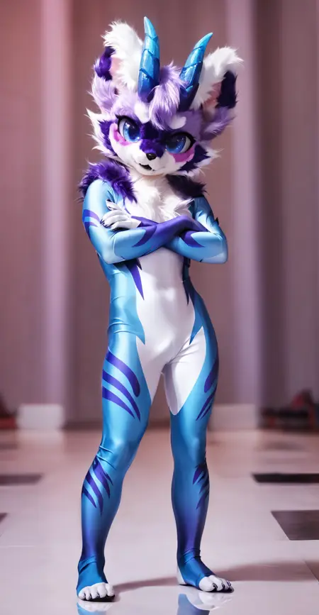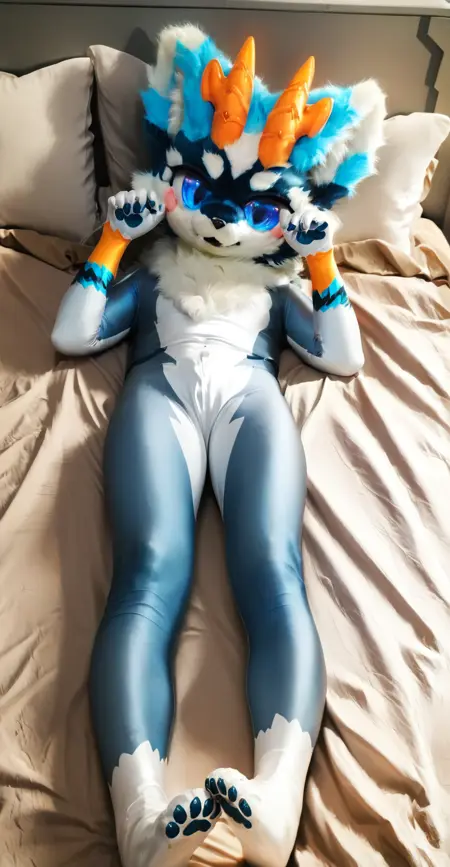 Trigger words:lycra fur suit, furry, furry male/female, [colour] and [colour] fur, [colour] and [colour] bodysuit, paws, furry ears, horns(optional),