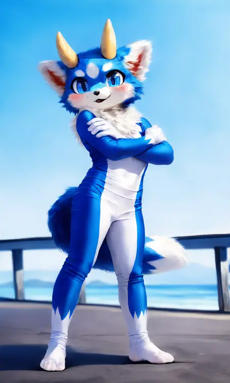 트리거 단어: lycra fur suit, furry, furry male/female, [색상] 및 [색상] 털, [색상] 및 [색상] 바디수트, 발바닥, 털 잔耳朵, 뿔(선택 사항),