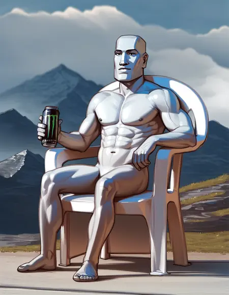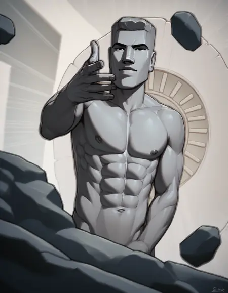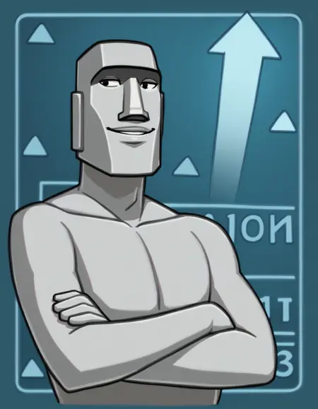 Promt: MoaiStone, rock body, gray skin, black eyes, monobrow, statue.