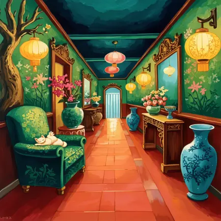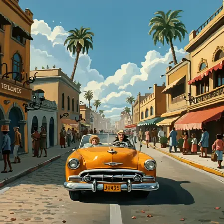 80年代風の手描き水彩画スタイルのアニメーション/カートゥーン風背景、イラスト、アート [Flux]