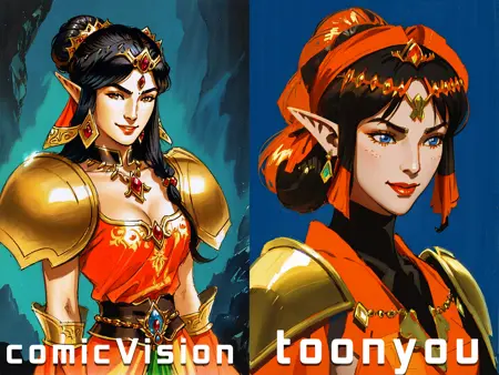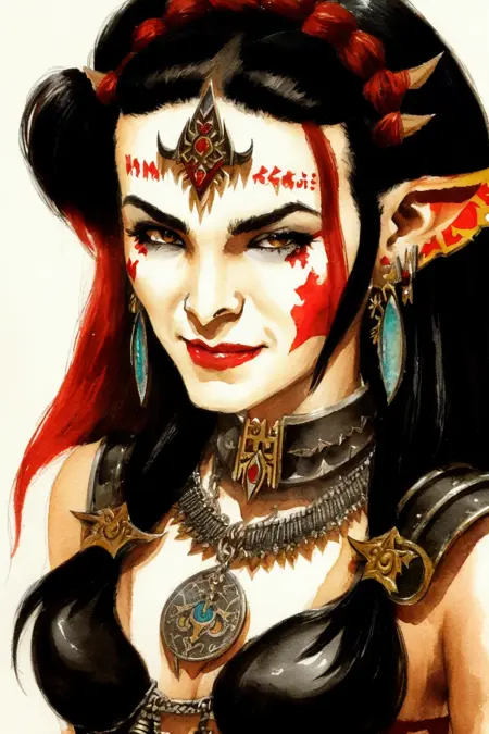 LoRA는 진정한 캐릭터 아트를 생성하는 데 완벽합니다. 태그로 남성/여성 + 오크/마법사/어두운 마법사/데몬/도워/엘프/인간을 사용하세요. 자세한 내용은 예시를 참조하세요. 데몬, 오크 태그의 가중치를 높이세요. 또한 부정적 프롬프트에 "elf"와 "pointy ears"를 추가해 보세요.