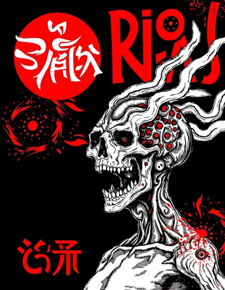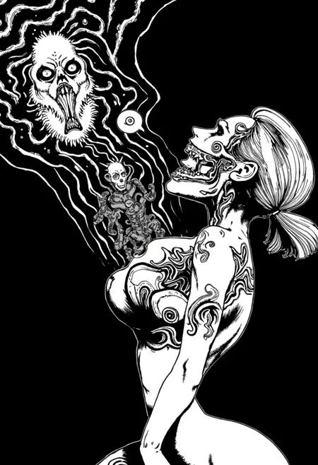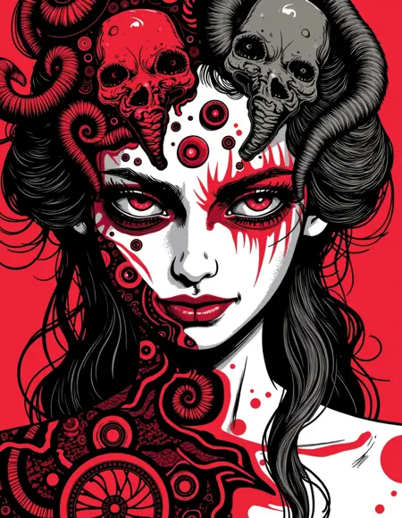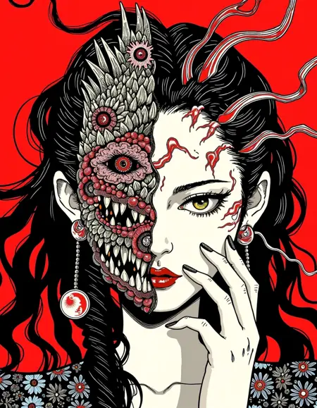 ishin_japanhorror,女人与日本恶魔、怪物、恐怖主题、超详细矢量艺术