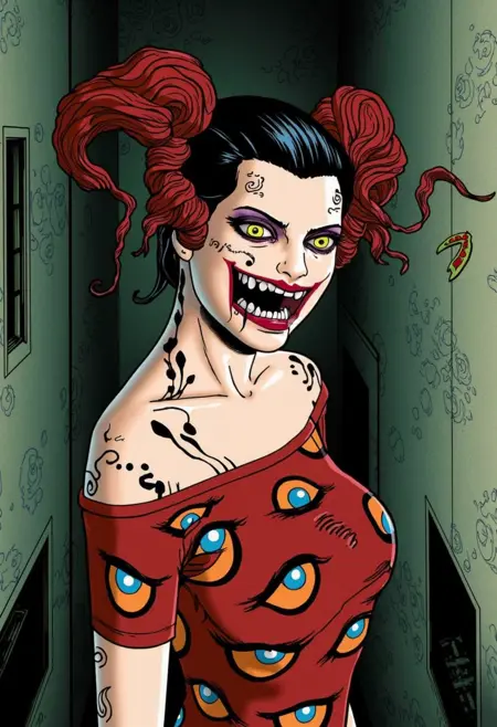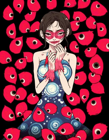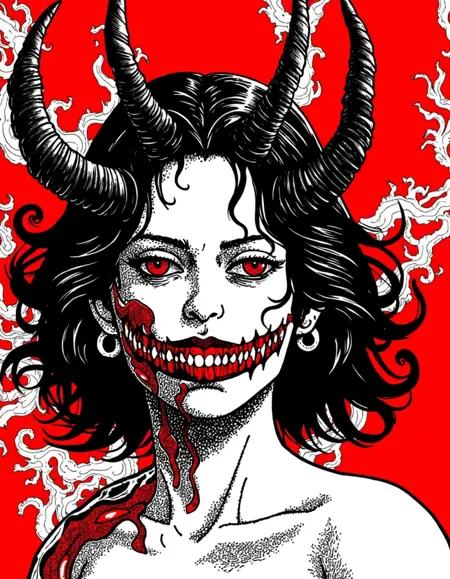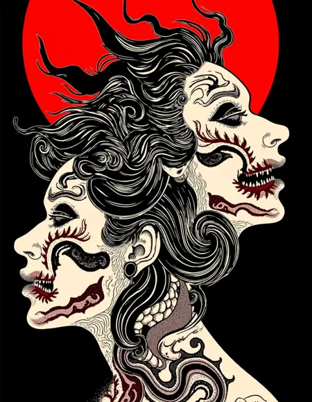 ishin_japanhorror , woman and japan demons, monster, horror theme, ultra detailed vector art