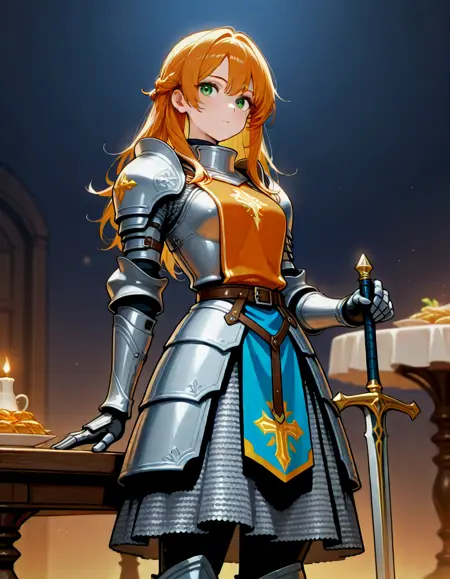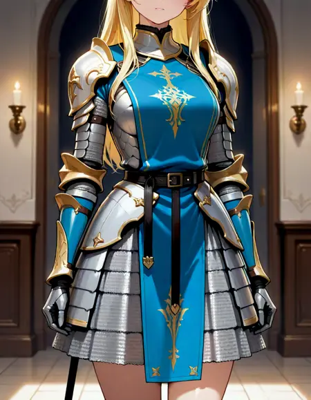铠装礼服,{鳞甲|板甲},{长袍|罩衣},{|||||||||||||||||||||头盔|大头盔|全罩头盔|巴斯金头盔|开放式头盔|萨莱特头盔|巴尔布特头盔|阿梅特头盔|闭合式头盔|面甲|锁子头罩|护颈},{1-3$$ 肩甲|护手|护肩|斗篷|盾牌|短斗篷|兜帽下垂|剑鞘|罩袍|长袍},{站立|坐着|战斗姿势|骑马|曲线身材},{1-2$$ 胸甲|背甲|全身甲|护腹|护腰|护肩片|护肩|肩甲|锁子甲衣|护颈|护臀|护腿|锁子裙},{1-2$$ 上臂甲|前臂甲|肘甲|护手|指套护手|臂甲},{1-2$$ 护腰|护腹|护腿|护臀|锁子裙},{1-2$$ 大腿甲|膝甲|胫甲|战靴|短靴},{站立|坐着|战斗姿势|骑马},细致的眼睛,{长发|短发},妆容,{室内|室外},{战场|教堂|沙漠|森林|砖墙|废墟|村庄},{十字军|圣殿骑士|圆桌骑士|骠骑兵|波兰翼骑兵},{1-3$$ 油画|水彩|丙烯|水粉|蛋彩|彩粉笔|炭笔|墨水|彩色铅笔|铅笔|动漫截图|西方漫画(风格)|漫画风格}