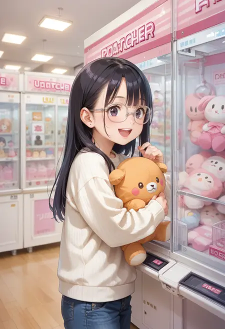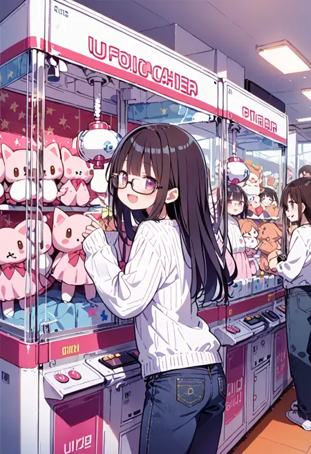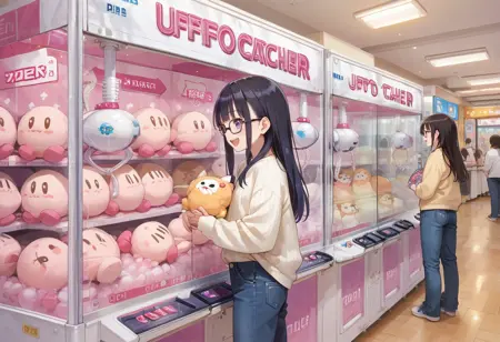 UFOCatcher, crane game, arcade, scenery, still life, character doll