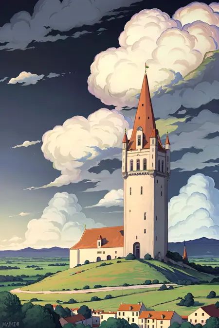 이 LoRA는 특정 스타일로 그려진 많은 건물을 대상으로 학습되었으며, 캐릭터에는 적용되지 않을 수도 있습니다. 시도해보세요.