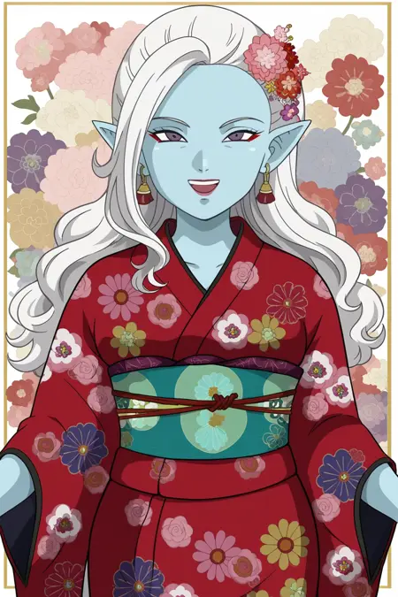 towa, 머리 장식, 긴 머리, 하얀 머리, 한쪽 눈 위로 떨어진 머리, 파란 피부, 색이 있는 피부, 뾰족한 귀,