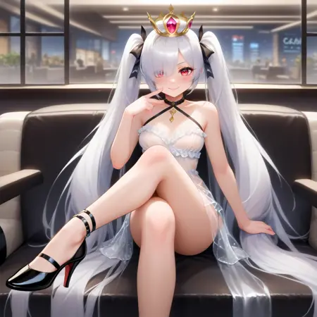 Cinderella, hair over one eye, red eyes, very long hair, twintails