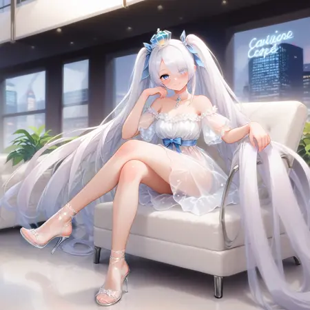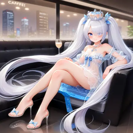 Cinderella, hair over one eye, blue eyes, very long hair, twintails
