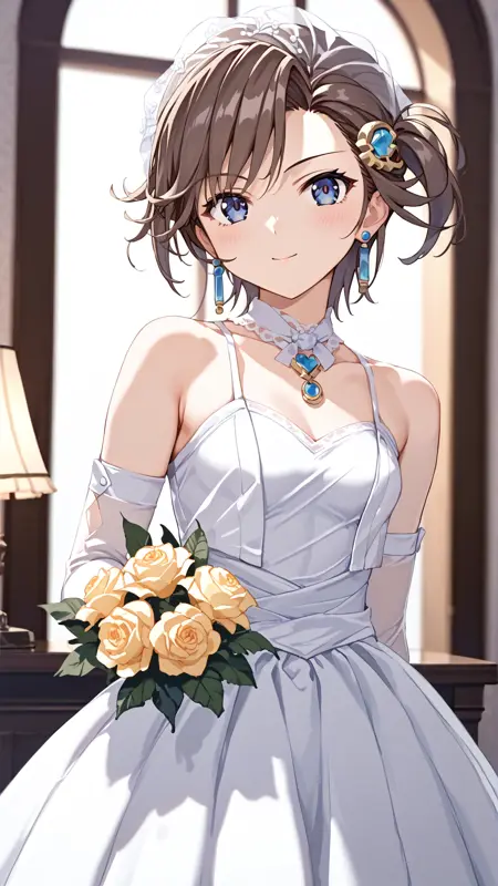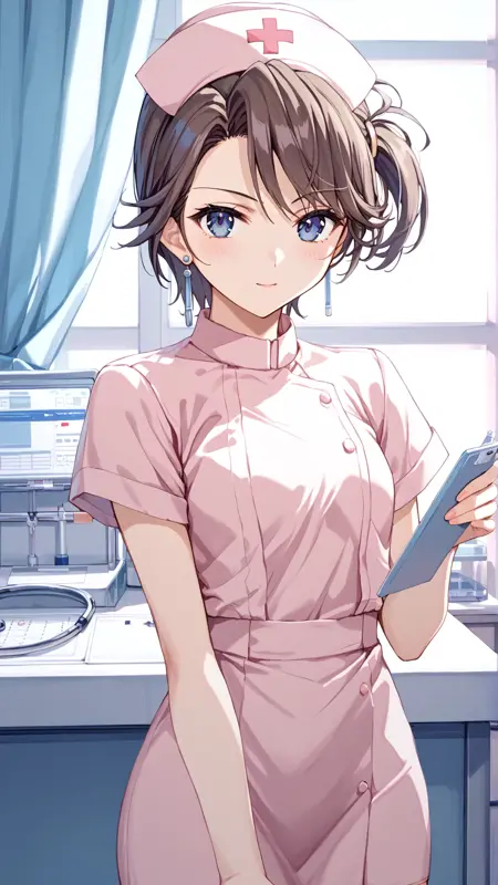 Appearance:blue eyes, brown hair, short hair,side ponytail,small breasts,