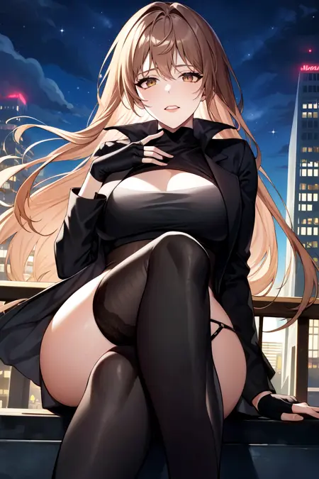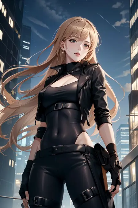 Bodysuit: yoo sangah, 1girl, black bodysuit, black jacket, fingerless gloves