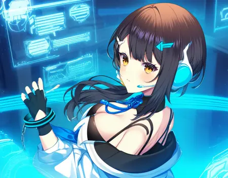 オペレーター服(この服は手が破綻しやすいようなので、手を補正するLORAやプロンプトを別途利用した方がいいです)