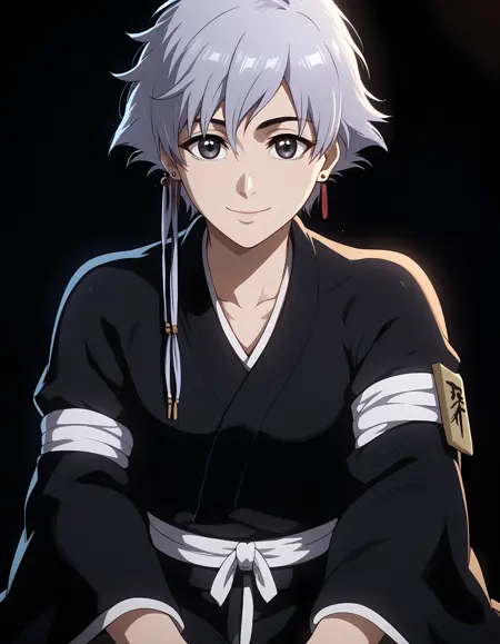 isane_kotetsu, earrings, short hair, grey hair, single sidelock, earrings,