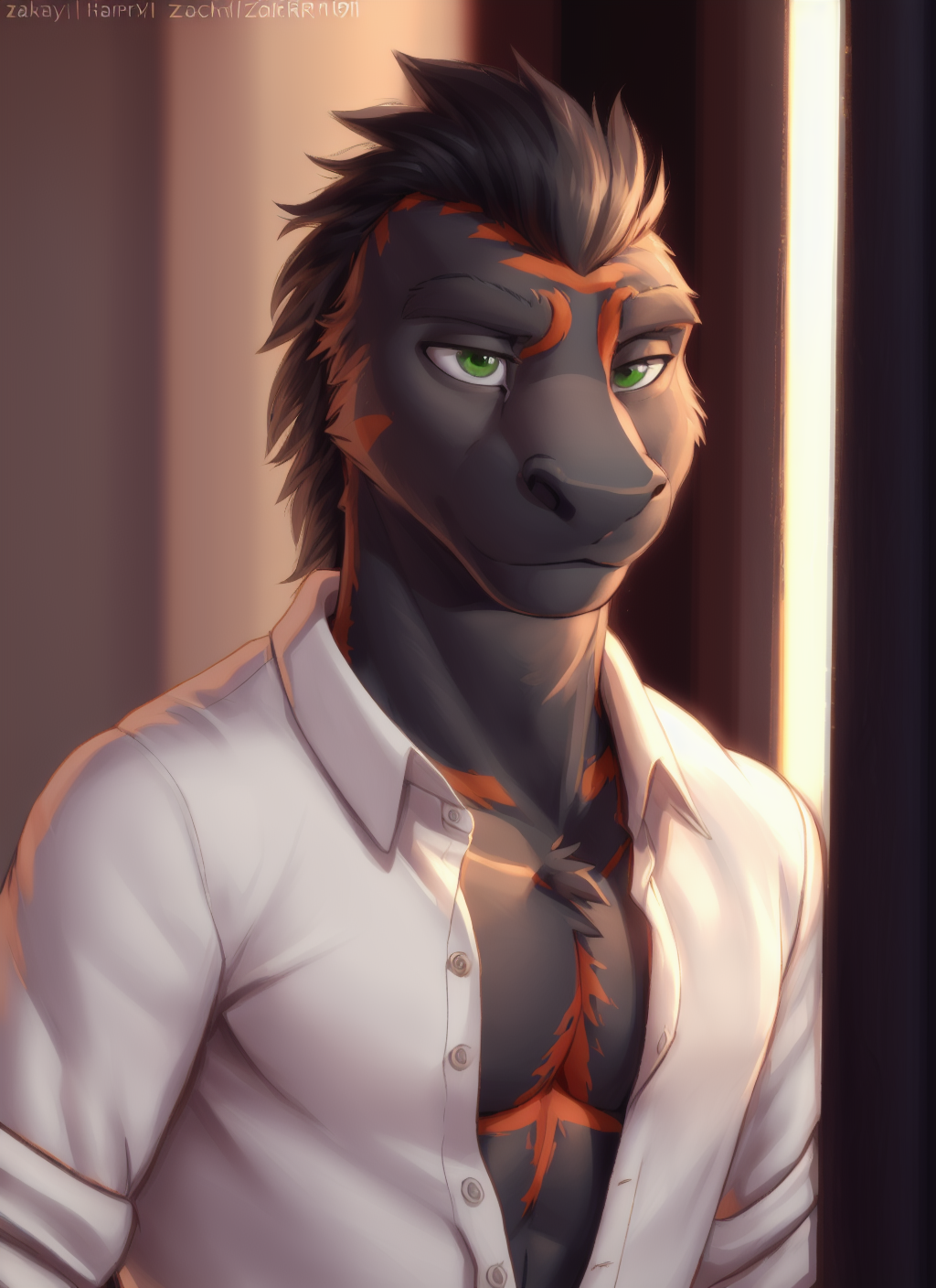 • 부정 프롬프트로 "ears, animal ears, white body, (white chest), feminine, woman, green body, green, fur"를 사용하는 것을 추천합니다