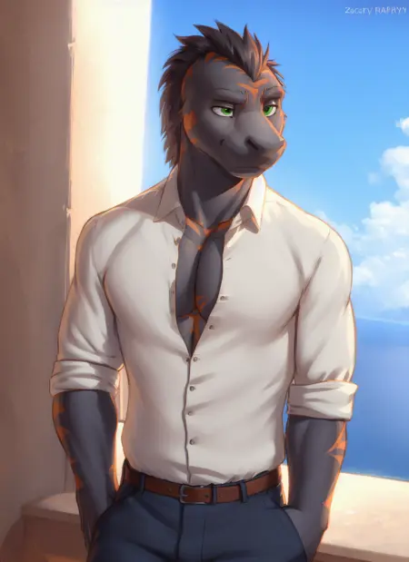 此LoRa模型使用Fluffyrock模型进行训练,该模型可在Furry Diffusion的Discord中找到,但所有样图均使用此处Civitai上的Indigo的Furry Mix生成