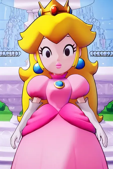 While I prefer V1 look for princess peach, V2.0 is technically better at replicating Peach from M&L: Brothership as I only included shots from the game in this one. V2 is trained on several AI images with the intention to replicate the style of princess peach but for other characters. While I pruned the tag black eyes and it should be pretty baked in, character tokens can override the eyes pretty easily so still suggest prompting for it if you want the look. For maximum effect prompt for chibi or short stack if you're into that kinda thing.