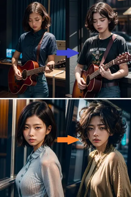 预计可能会做成一个系列,主要是我自己喜欢的发型类型,可以搭配我的另一个改善眼睛和面部的lora使用 /model/51430/better-eyesfaceskin-or,效果不错,如图所示。权重随意,可以改变头发状态。 另外,如有跟现实生活中面部相似的,纯属偶然,不代表任何真实人物 。