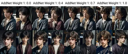 预计可能会做成一个系列,主要是我自己喜欢的发型类型,可以搭配我的另一个改善眼睛和面部的lora使用 /model/51430/better-eyesfaceskin-or,效果不错,如图所示。权重随意,可以改变头发状态。 另外,如有跟现实生活中面部相似的,纯属偶然,不代表任何真实人物 。