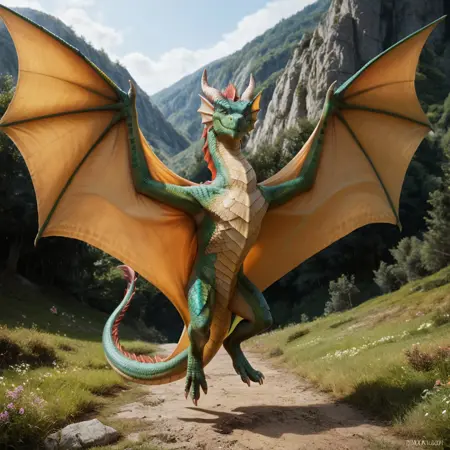 Western Dragon Collection XL LoRA와 테스트한 결과, 위와 반대로 설정해야 했습니다. Western Dragon LoRA 강도는 0.6으로, 이 Wyvern LoRA는 더 높게 설정했고, 이 조정 후 더 정확한 결과를 얻었습니다.