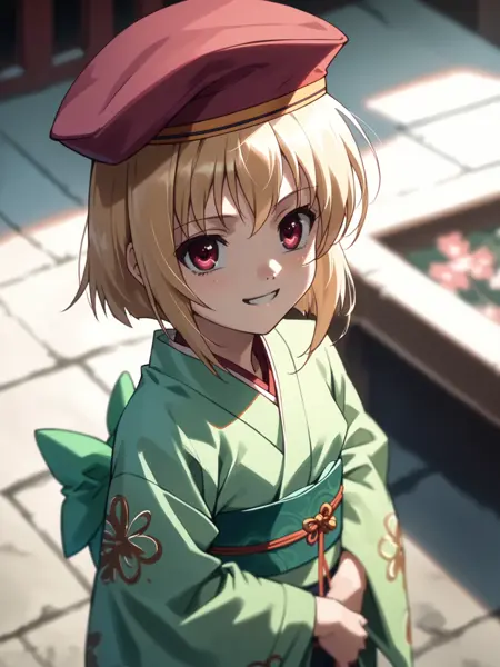 추천 프롬프트: ht_shokatsuryou, beret, hat bow, green bow