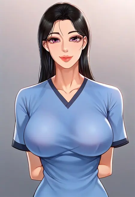 (( <lora:eun-jin :1> , eun-jin , piercing purple eyes, clear eyes, bright pupils, beautiful eyes, beautiful black hair, beautiful long hair, huge and shaggy breasts, thin waist, wide hips, beautiful skin, natural beauty, extraordinary beautiful woman, attractive woman, super sexy woman, lustful body, sexy woman with seductive obscene body, sensual body, voluptuous body, sexy beauty, ))