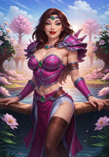 画像生成には強度を約1に設定することをお勧めします。その後、強度を約0.5に下げて顔の修正を行ってください。A.F. Kayのアートワークが限られているため、彼女のすべてのアーマーの細部を捉えつつ、過学習を避けたLoRAを作成するのが難しかったです。過学習すると目がぼやけるなどの問題が発生する可能性があるため、低強度で顔の修正を行うことをお勧めします。