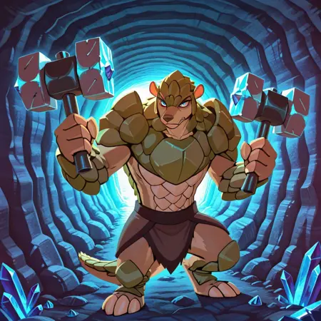 armor, loincloth, twin hammers, warhammer